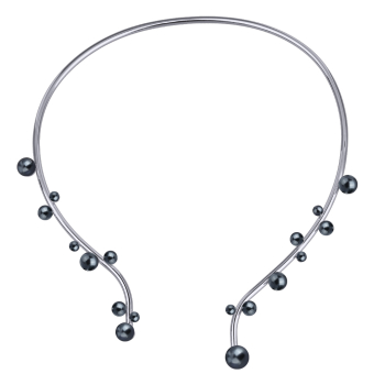 Колье Просекко (Майорка 4-10мм темно-серая; покрытие родий), Есть комплект