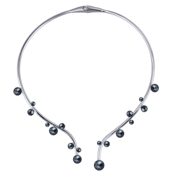 Колье Просекко (Майорка 4-10мм темно-серая; покрытие родий), Есть комплект