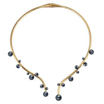 Колье Просекко (Майорка 4-10мм темно-серая; покрытие золото), Есть комплект