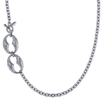 Изготовлено из ювелирного сплава на основе латуни с гальваническим покрытием родием. Длина 99см. Замок-тогл. Размер кулона 7х3см.