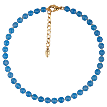 Изготовлено из ювелирного сплава на основе латуни с гальваническим покрытием золотом. Изделие украшает агат василькового цвета диаметром 8мм. Длина 40см. Замок-карабин с удлинителем 5см.