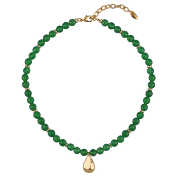 Изготовлено из ювелирного сплава на основе латуни с гальваническим покрытием золотом. Изделие украшает натуральный зеленый агат диаметром мм. Длина 46см. Замок-карабин с удлинителем 6см. Размер кулона 2х1.4см.