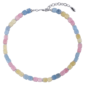 Изготовлено из ювелирного сплава на основе латуни с гальваническим покрытием родием. Изделие украшает натуральный кварц цвета карамельный микс диаметром 7-8мм. Длина 42см. Замок-карабин с удлинителем 7см.