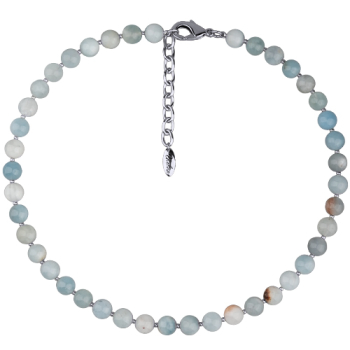 Изготовлено из ювелирного сплава на основе латуни с гальваническим покрытием родием. Изделие украшает опал голубого цвета диаметром 8мм. Длина 40см. Замок-карабин с удлинителем 5см.