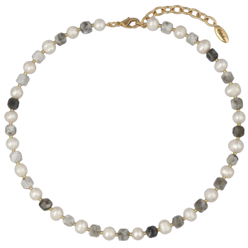 Колье Селена (спектролит, жемчуг; покрытие золото) 40-45см, Есть комплект
