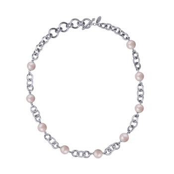 Изготовлено из ювелирного сплава на основе латуни с гальваническим покрытием родием. Изделие украшает майорский круглый жемчуг розового цвета диаметром 12мм. Длина колье 50см. Застёжка в форме якоря с удлинителем 10см.
