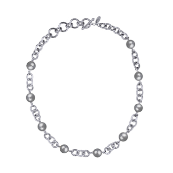 Изготовлено из ювелирного сплава на основе латуни с гальваническим покрытием родием. Изделие украшает майорский круглый жемчуг серо-голубого цвета диаметром 12мм. Длина колье 50см. Застёжка в форме якоря с удлинителем 10см.