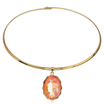 Изготовлено из ювелирного сплава на основе латуни с гальваническим покрытием золотом. Изделие украшают кристаллы SW оранжевого цвета. Длина колье 42см. Размер кулона 30х20мм.