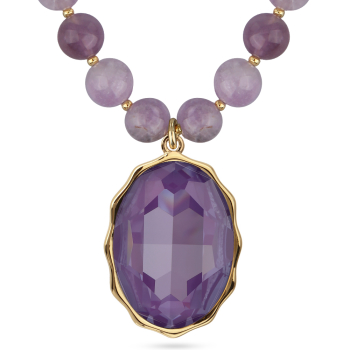Изготовлено из ювелирного сплава на основе латуни с гальваническим покрытием золотом. Изделие украшают кристаллы SW пурпурного цвета и аметист диаметром 8мм. Длина колье 43см. Замок-карабин с удлинителем 5см. Размер кулона 30х20мм.