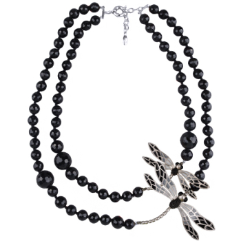 Колье Стрекоза (эмаль серая, черная, агат; покрытие матовый родий) 65-70см, Есть комплект