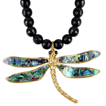 Колье Стрекоза (гелиотис, агат; покрытие золото) 45-50см, Есть комплект