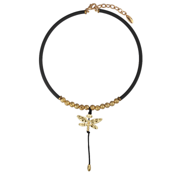 Изготовлено из ювелирного сплава на основе латуни с гальваническим покрытием золотом. Изделие украшает бронзовая лава. Длина черного каучукового шнурка 40см. Замок-карабин с удлинителем 5см. Длина кулона 8см.