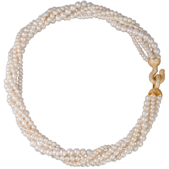 Изготовлено из ювелирного сплава на основе латуни с гальваническим покрытием золотом. Изделие украшают жемчуг диаметром 5мм и белый фианит Длина колье 50см.