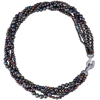 Изготовлено из ювелирного сплава на основе латуни с гальваническим покрытием родием. Изделие украшают сине-фиолетовый жемчуг диаметром 5мм и белый фианит Длина колье 50см.