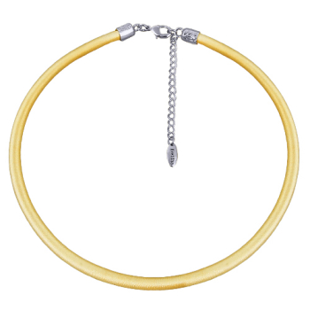 Изготовлено из ювелирного сплава на основе латуни с гальваническим покрытием родием. Длина светло-золотистого текстильного шнурка 48см. Шпрингельный замок с удлинителем 5см.