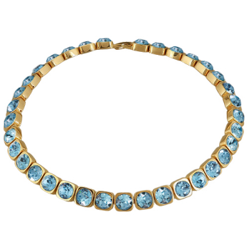 Колье Теннис (кристаллы SW аквамарин 8мм; покрытие золото) 37-40см, Есть комплект