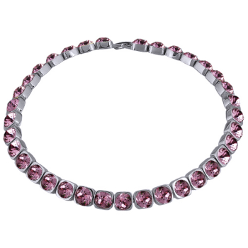 Изготовлено из ювелирного сплава на основе латуни с гальваническим покрытием родием. Изделие украшают кристаллы SW аметистового цвета диаметром 8мм. Длина 37-40см.