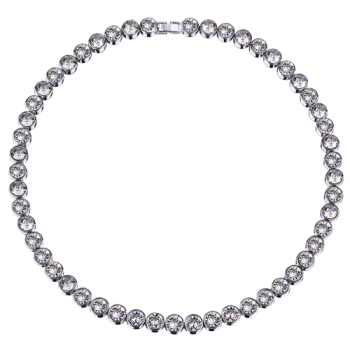 Изготовлено из ювелирного сплава на основе латуни с гальваническим покрытием родием. Изделие украшают кристаллы SW белого цвета диаметром 6мм. Длина 44-49см.
