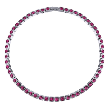Изготовлено из ювелирного сплава на основе латуни с гальваническим покрытием родием. Изделие украшают кристаллы SW цвета фуксия диаметром 4мм. Длина 36-39см.