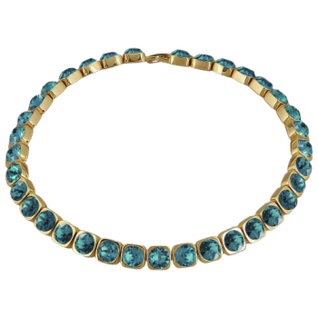 Изготовлено из ювелирного сплава на основе латуни с гальваническим покрытием золотом. Изделие украшают кристаллы SW изумрудного цвета диаметром 8мм. Длина 37-40см.