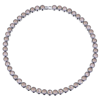 Изготовлено из ювелирного сплава на основе латуни с гальваническим покрытием родием. Изделие украшают кристаллы SW цвета пыльная роза диаметром 6мм. Длина 44-49см.