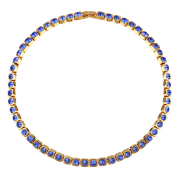 Изготовлено из ювелирного сплава на основе латуни с гальваническим покрытием золотом. Изделие украшают кристаллы SW цвета сапфир диаметром 4мм. Длина 36-39см.
