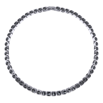 Изготовлено из ювелирного сплава на основе латуни с гальваническим покрытием родием. Изделие украшают кристаллы SW темно-серого цвета диаметром 4мм. Длина 36-39см.