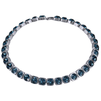 Изготовлено из ювелирного сплава на основе латуни с гальваническим покрытием родием. Изделие украшают кристаллы SW темно-синего цвета диаметром 8мм. Длина 37-40см.
