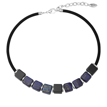 Колье Терра (агат, лазурит 13х13мм, каучук черный; покрытие родий) 40-45см, Есть комплект