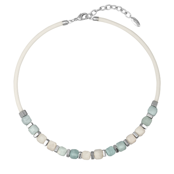 Колье Терра (аквамарин, кварц 9мм, каучук белый; покрытие родий) 40-45см, Есть комплект