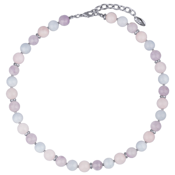 Изготовлено из ювелирного сплава на основе латуни с гальваническим покрытием родием. Изделие украшает натуральный разноцветный морганит диаметром 10мм. Длина 41см. Замок-карабин с удлинителем 7см.