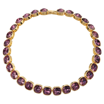 Изготовлено из ювелирного сплава на основе латуни с гальваническим покрытием золотом. Изделие украшают кристаллы SW цвета бургунди диаметром 10мм. Длина 38-42см.