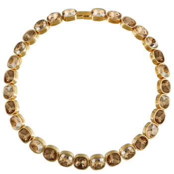 Изготовлено из ювелирного сплава на основе латуни с гальваническим покрытием золотом. Изделие украшают кристаллы SW цвета шампань и мед диаметром 10мм. Длина 38-42см.