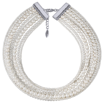 Изготовлено из ювелирного сплава на основе латуни с гальваническим покрытием родием. Изделие украшает жемчуг Майорка диаметром 3-6мм белого цвета. Длина 36-40см.