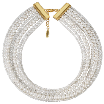 Изготовлено из ювелирного сплава на основе латуни с гальваническим покрытием золотом. Изделие украшает жемчуг Майорка диаметром 3-6мм белого цвета. Длина 36-40см.