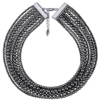 Изготовлено из ювелирного сплава на основе латуни с гальваническим покрытием родием. Изделие украшает жемчуг Майорка диаметром 3-6мм темно-серого цвета. Длина 36-40см.