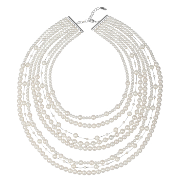 Изготовлено из ювелирного сплава на основе латуни с гальваническим покрытием родием. Колье выполнено из белого жемчуга Майорка диаметром мм. Длина 50см. Замок-карабин с удлинителем 5см.