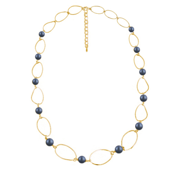 Изготовлено из ювелирного сплава на основе латуни с гальваническим покрытием золотом. Изделие украшает майорский круглый жемчуг черничного цвета диаметром 12мм. Длина колье 95см. Замок-карабин с удлинителем 5см.