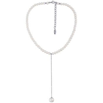 Изготовлено из ювелирного сплава на основе латуни с гальваническим покрытием родием. Изделие украшает жемчуг диаметром 5-9мм белого цвета. Длина колье 38-45см.