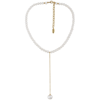 Изготовлено из ювелирного сплава на основе латуни с гальваническим покрытием золотом. Изделие украшает жемчуг диаметром 5-9мм белого цвета. Длина колье 38-45см.