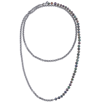 Изготовлено из ювелирного сплава на основе латуни с гальваническим покрытием родием. Изделие украшает бензиновый жемчуг диаметром 6мм Длина колье 140см. *Цвет и форма жемчужин может отличаться от изображенной на фото.