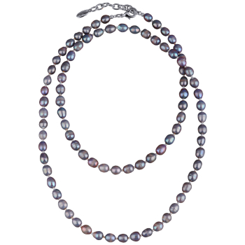 Изготовлено из ювелирного сплава на основе латуни с гальваническим покрытием родием. Изделие украшает натуральный жемчуг диаметром 6мм бензинового цвета. Длина 92см. Удлинитель 5см.*Цвет и форма жемчужин может отличаться от изображенной на фото.