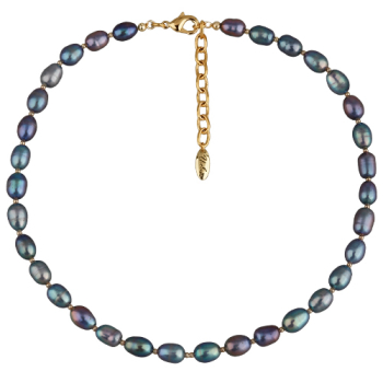Изготовлено из ювелирного сплава на основе латуни с гальваническим покрытием золотом. Изделие украшает натуральный жемчуг диаметром 6мм бензинового цвета. Длина 44см. Удлинитель 5см. *Цвет и форма жемчужин может отличаться от изображенной на фото.