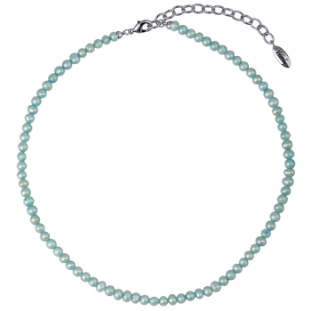 Изготовлено из ювелирного сплава на основе латуни с гальваническим покрытием родием. Изделие украшает жемчуг голубого цвета диаметром 5мм. Длина колье 38см. Удлинитель 7см. *Цвет и форма жемчужин может отличаться от изображенной на фото.
