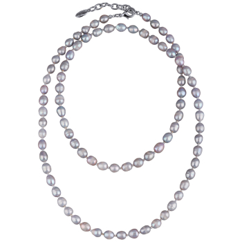 Изготовлено из ювелирного сплава на основе латуни с гальваническим покрытием родием. Изделие украшает натуральный жемчуг диаметром 6мм серо-голубого цвета. Длина 90см. Удлинитель 6см.*Цвет и форма жемчужин может отличаться от изображенной на фото.