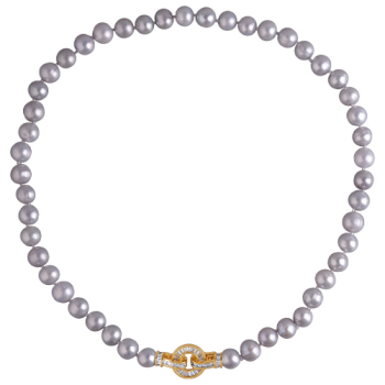 Изготовлено из ювелирного сплава на основе латуни с гальваническим покрытием золотом. Колье выполнено из натурального серо-голубого жемчуга высшего качества диаметром 8-9мм и украшено декоративным замком из фианитов белого цвета. Длина 50см.*Цвет и форма