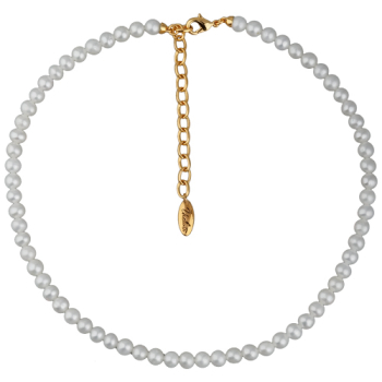 Изготовлено из ювелирного сплава на основе латуни с гальваническим покрытием золотом. Изделие украшает светло-серый жемчуг диаметром 5мм. Длина колье 38см. Удлинитель 7см.