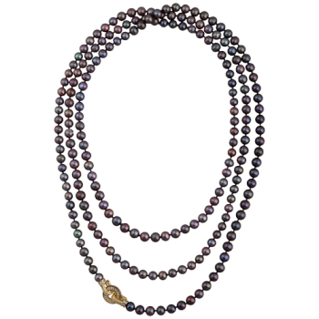 Изготовлено из ювелирного сплава на основе латуни с гальваническим покрытием золотом. Колье выполнено из натурального жемчуга цвета шоколадный микс высшего качества диаметром 7-8мм и украшено декоративным замком из фианита белого цвета. Длина 160см.