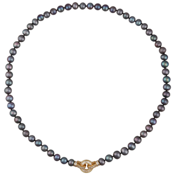 Изготовлено из ювелирного сплава на основе латуни с гальваническим покрытием золотом. Колье выполнено из натурального жемчуга цвета шоколадный микс высшего качества диаметром 8-9мм и украшено декоративным замком из фианита белого цвета. Длина 55см.*Цвет и