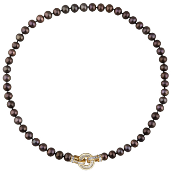Изготовлено из ювелирного сплава на основе латуни с гальваническим покрытием золотом. Колье выполнено из натурального жемчуга темно-шоколадного цвета высшего качества диаметром 8-9мм и украшено декоративным замком из фианитов белого цвета. Длина 45см.*Цве